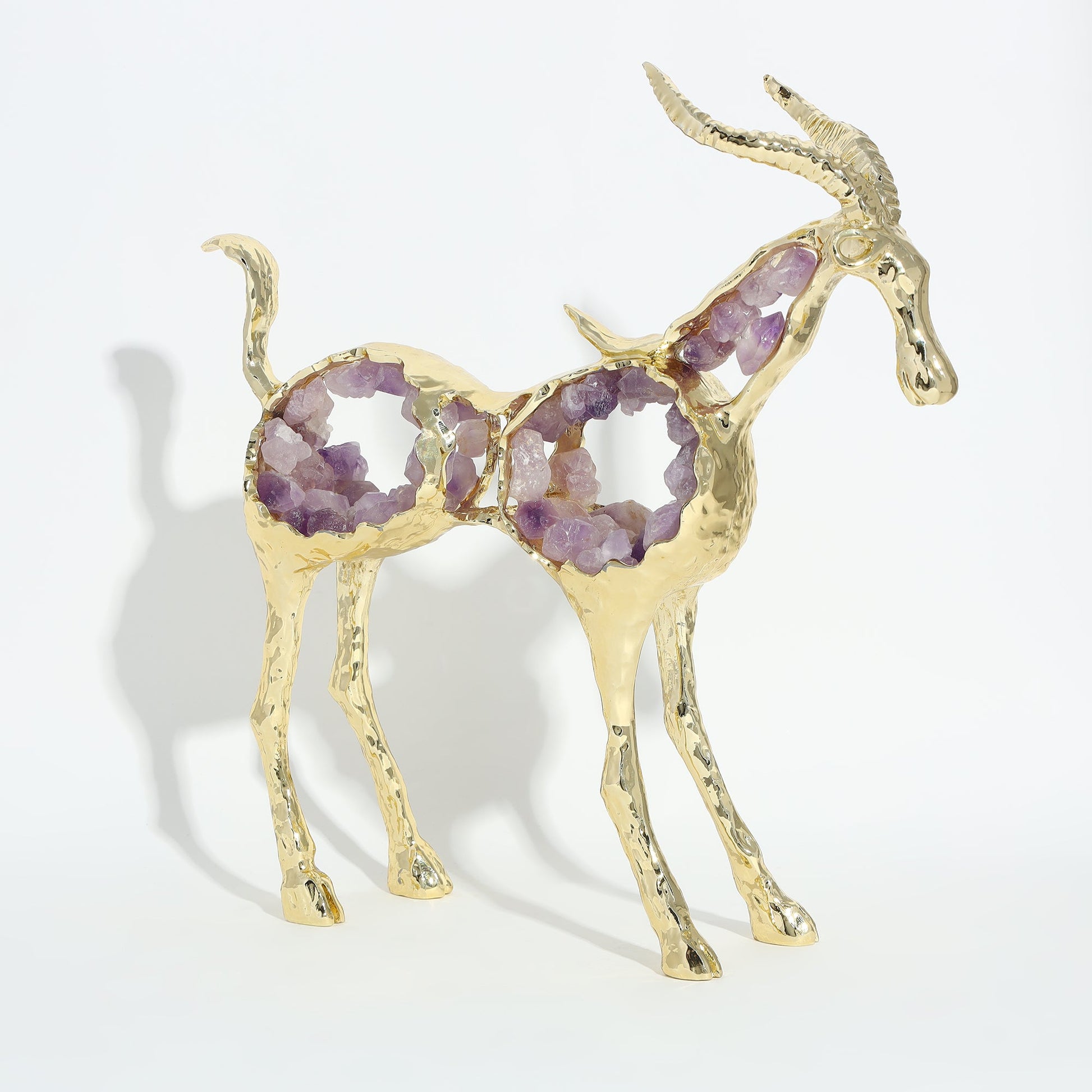 Crafted from hammered metal and adorned with shimmering amethyst, the Antler Sculpture is a true work of art. Its luxurious marble base enhances its opulent appeal, making it the perfect show-stopping centerpiece for consoles, mantlepieces, or any statement-worthy spot in your home.