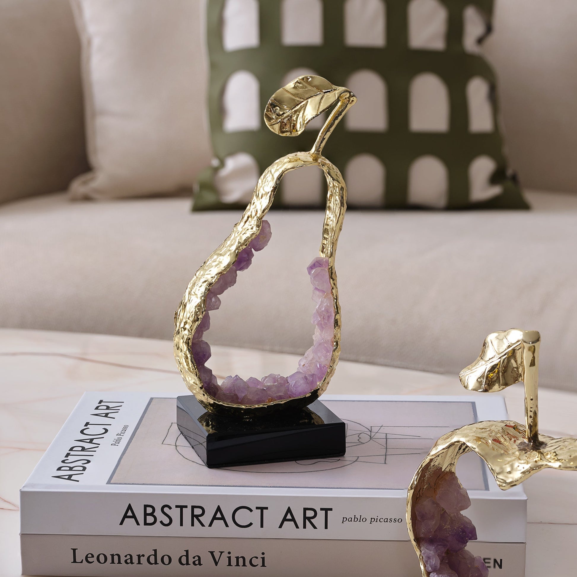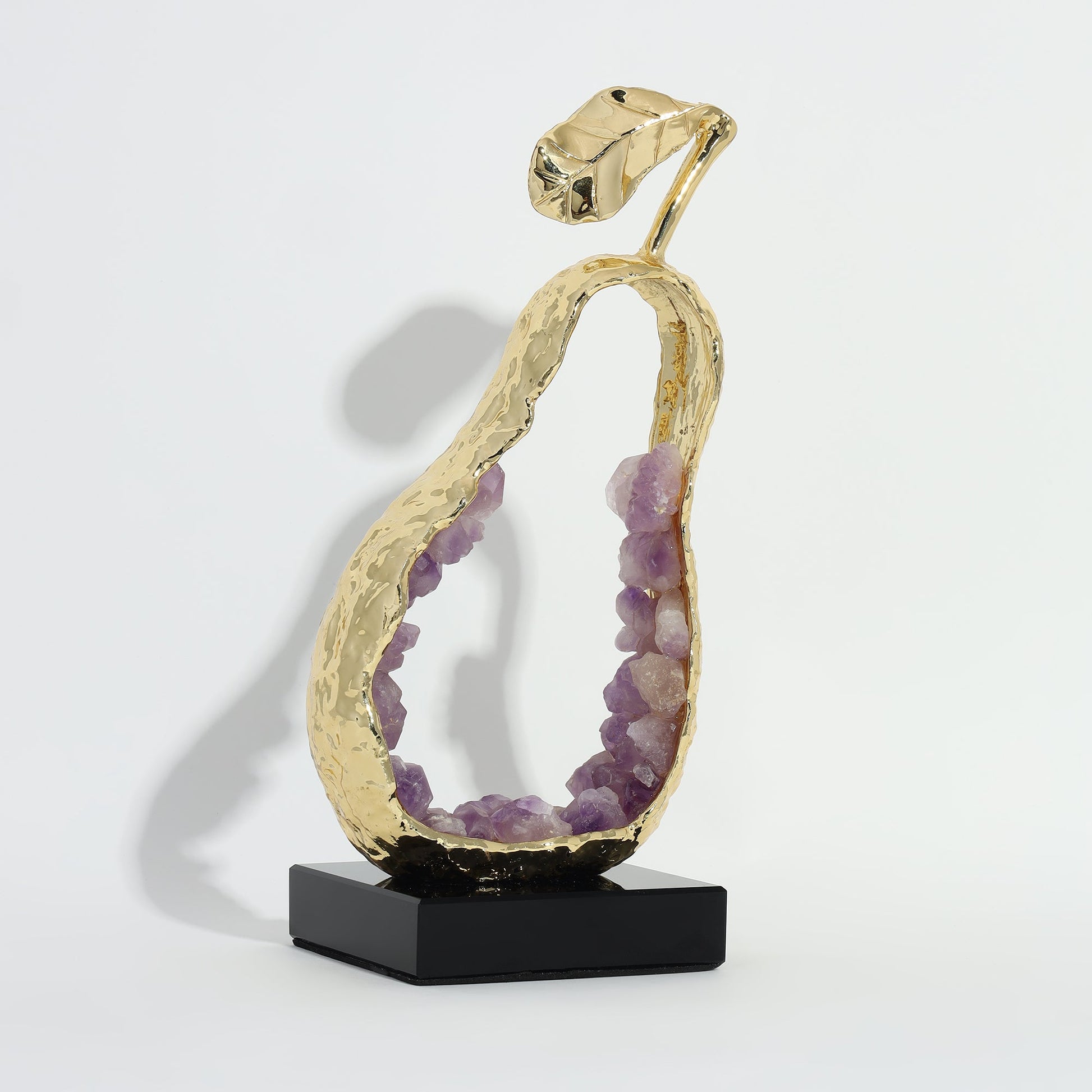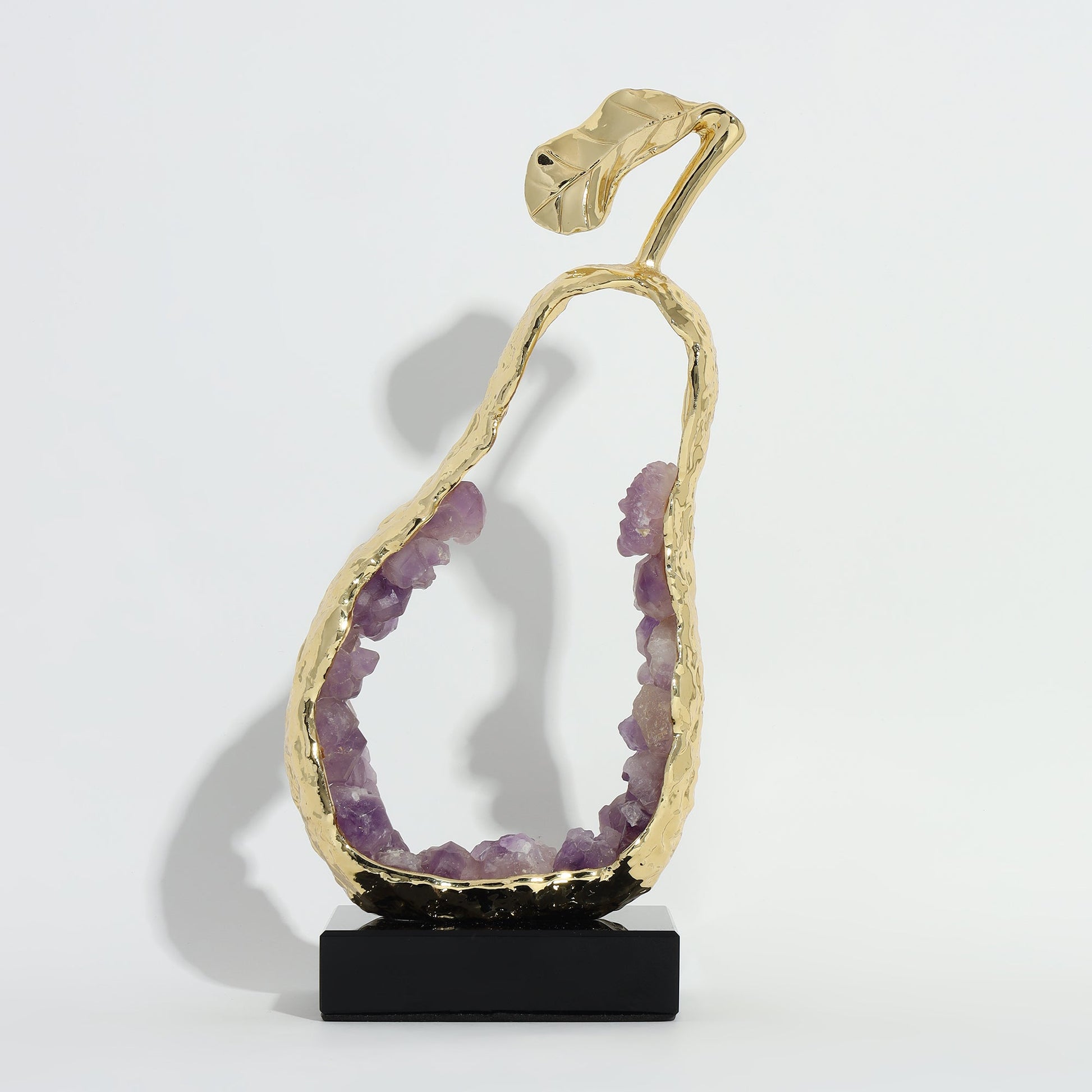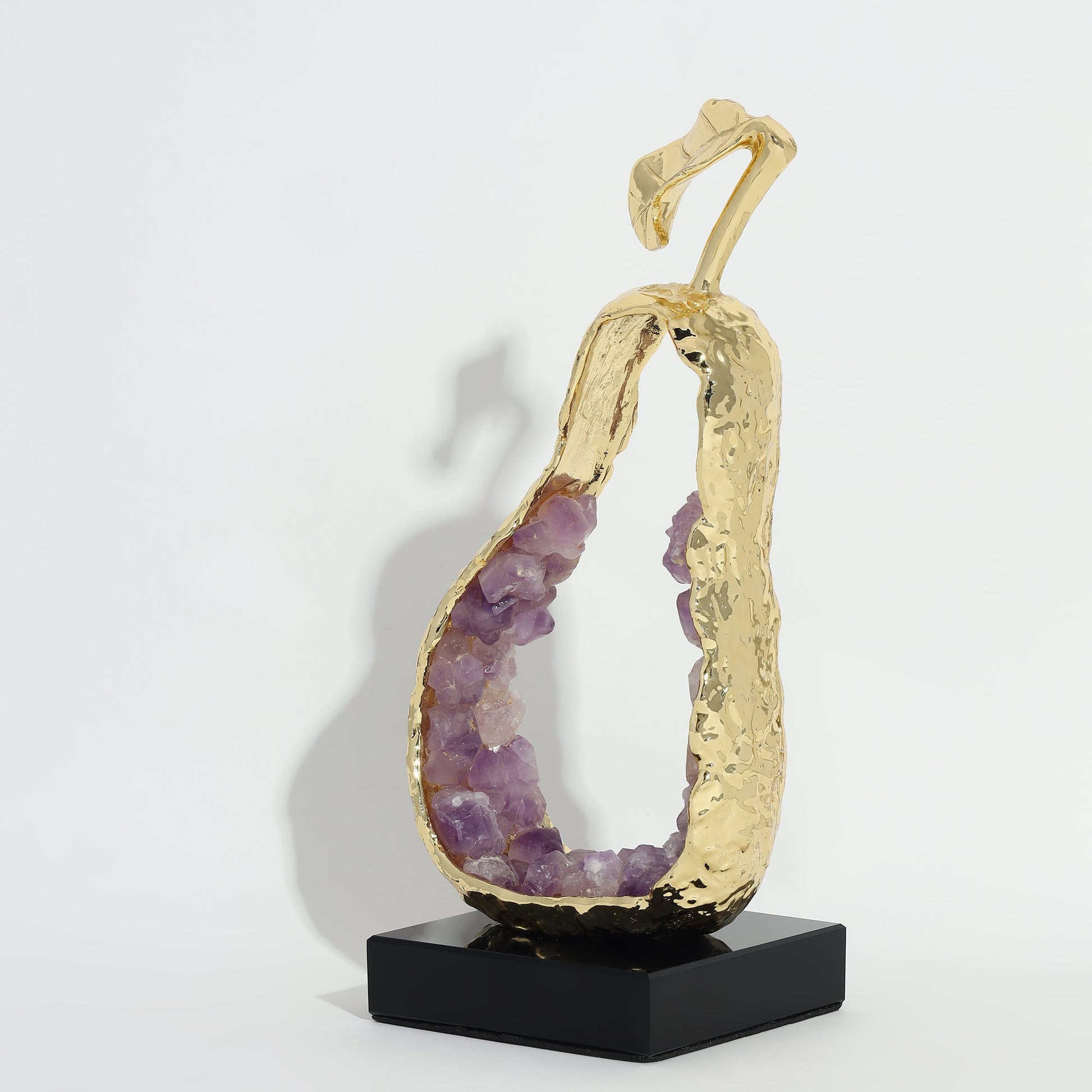 The Ava Sculpture is a compact yet captivating décor piece that redefines elegance with its understated charm. Inspired by the organic beauty of a pear, this exquisite metal sculpture features a hollow form embedded with hand-cut amethyst crystals, creating a mesmerizing interplay of texture and luxury.