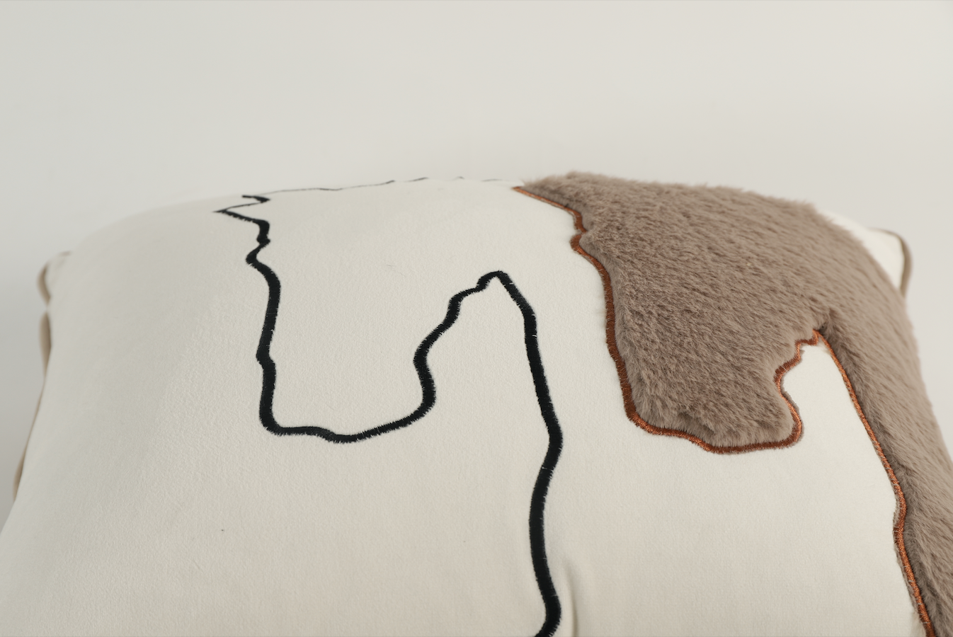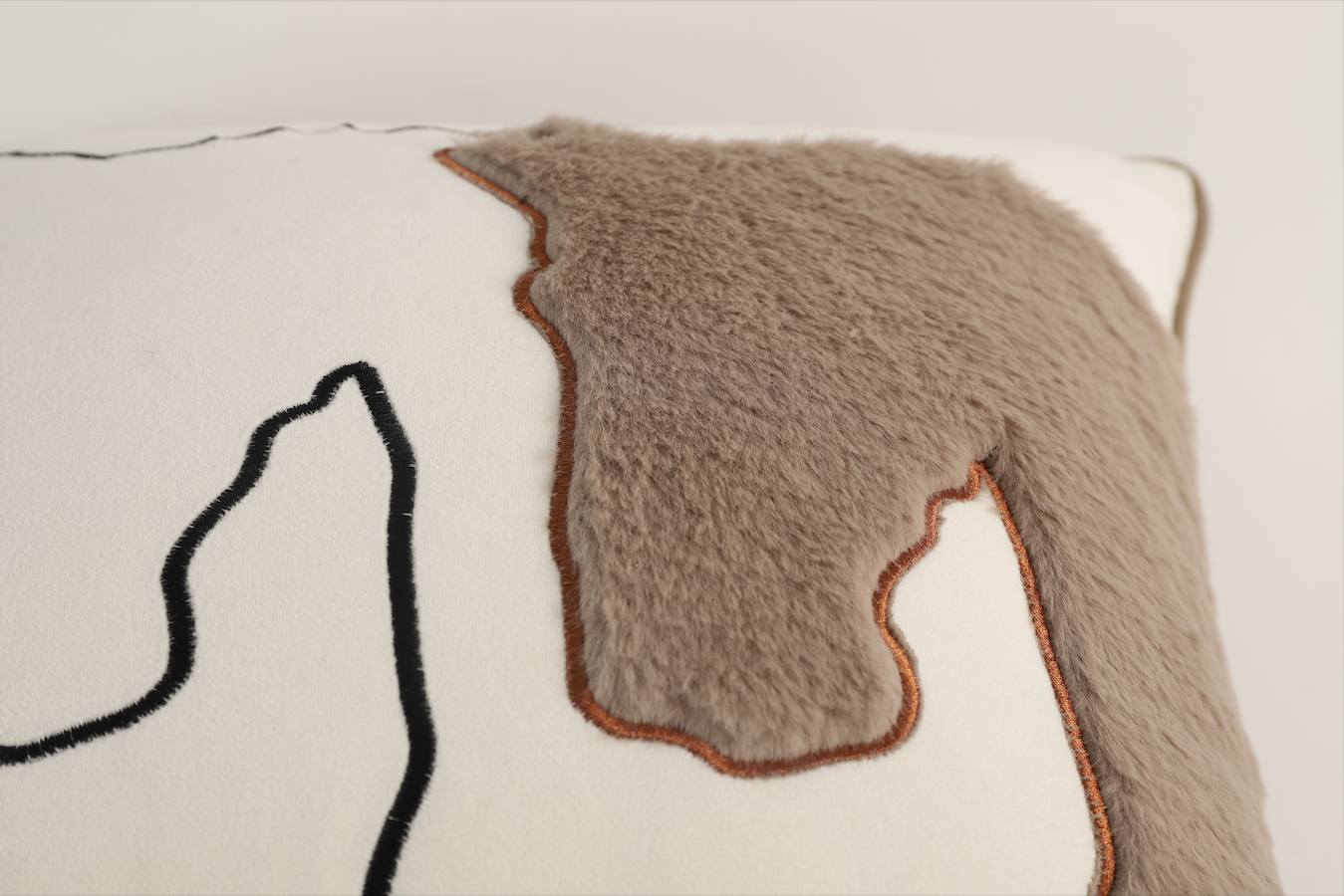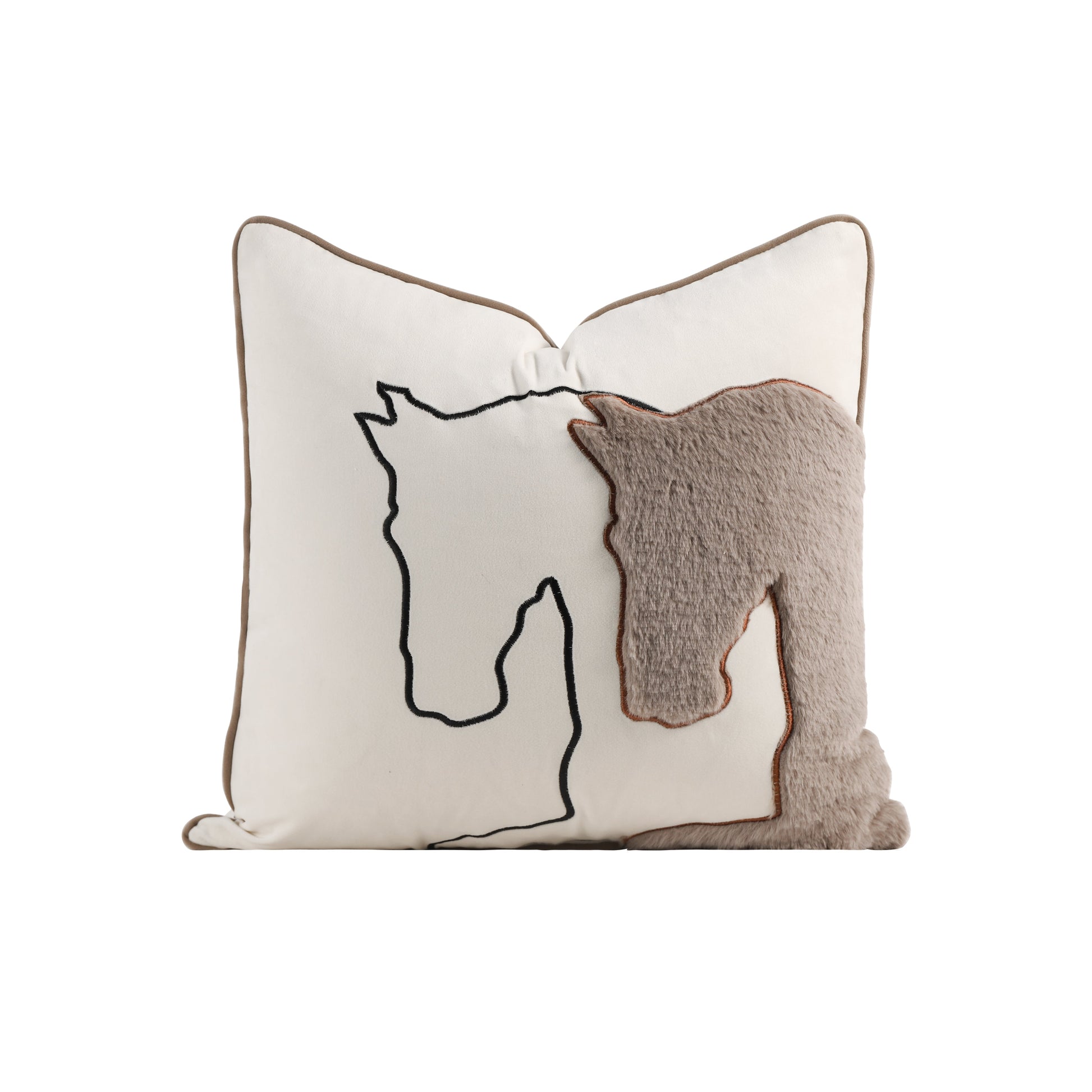 An artistic ode to grace and strength, Cavallo is a cushion cover that captures quiet majesty in every thread. Featuring a striking dual-horse silhouette—one outlined in bold embroidery, the other rendered in soft faux fur applique—this piece is a tactile masterpiece. Set against a clean ivory base and framed with tonal piping, it brings a refined, equestrian charm to any space.