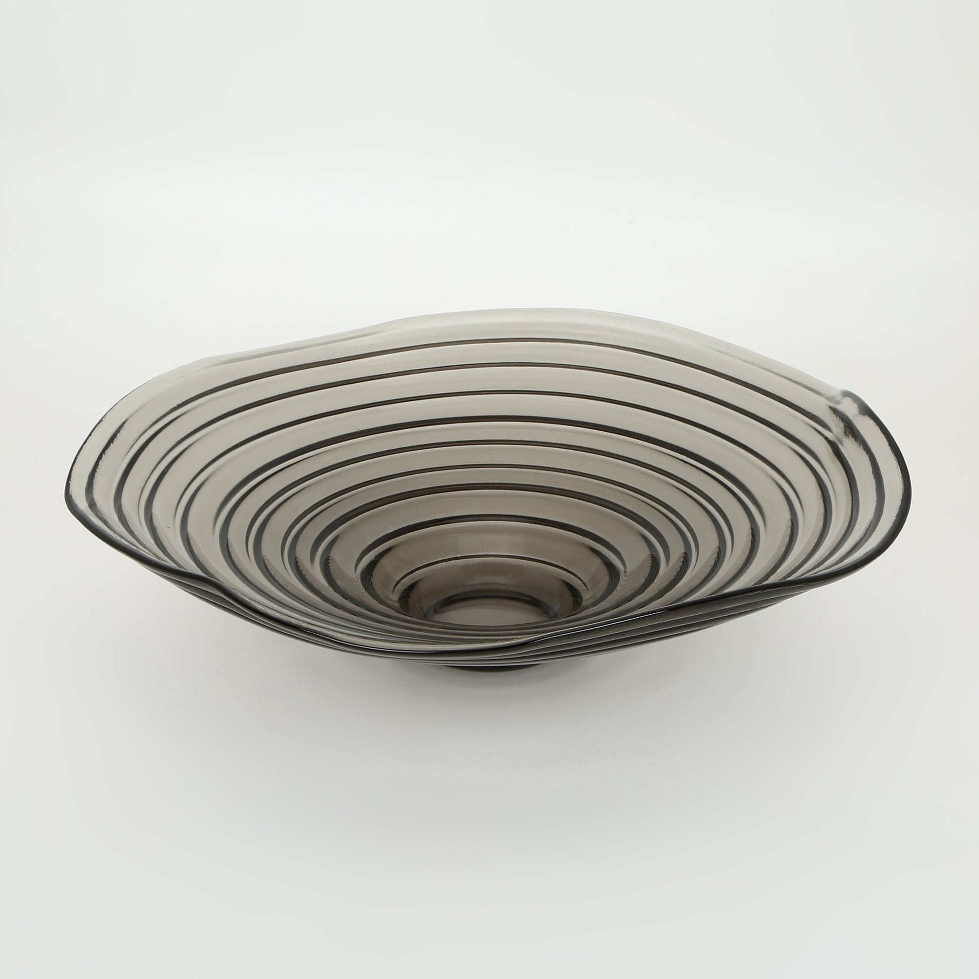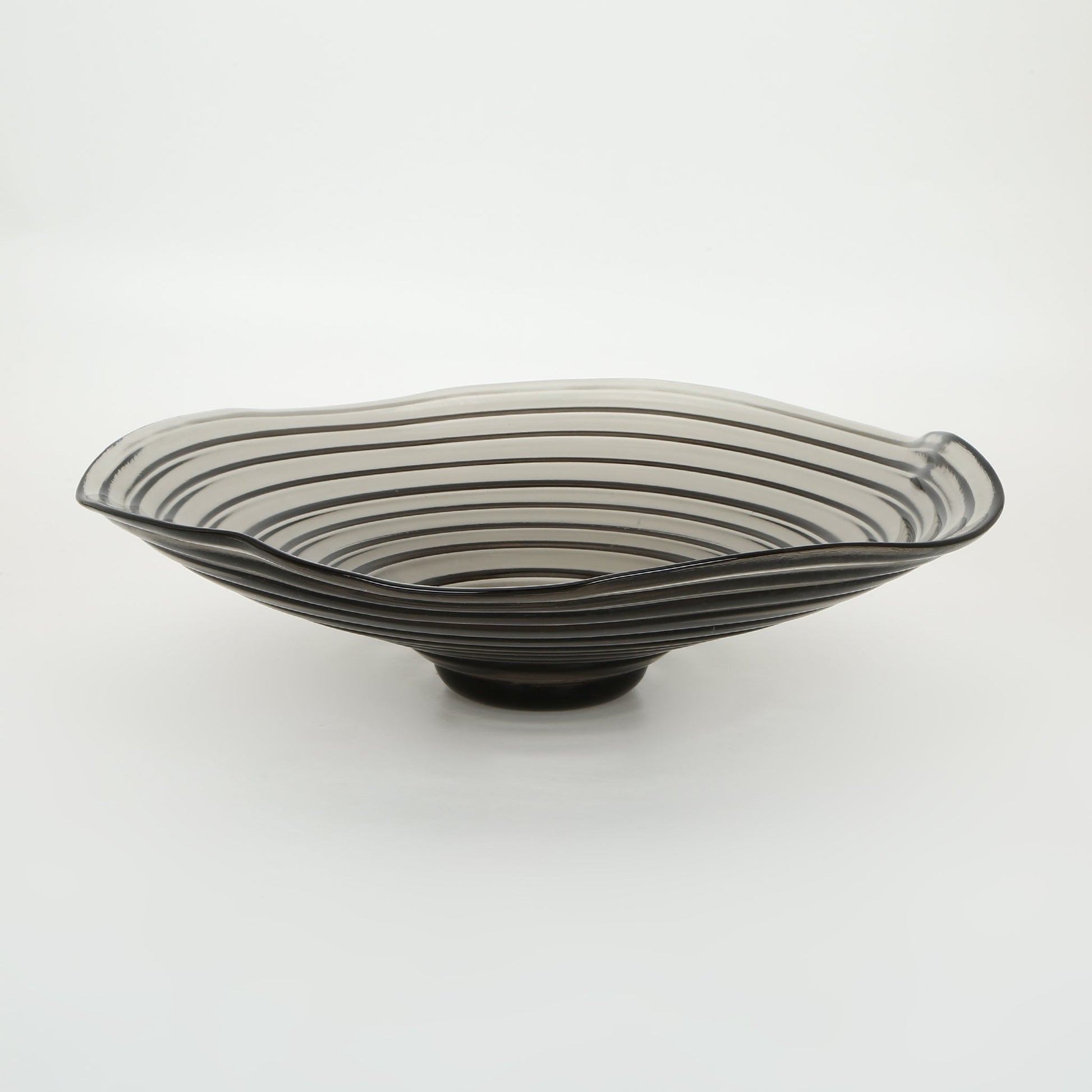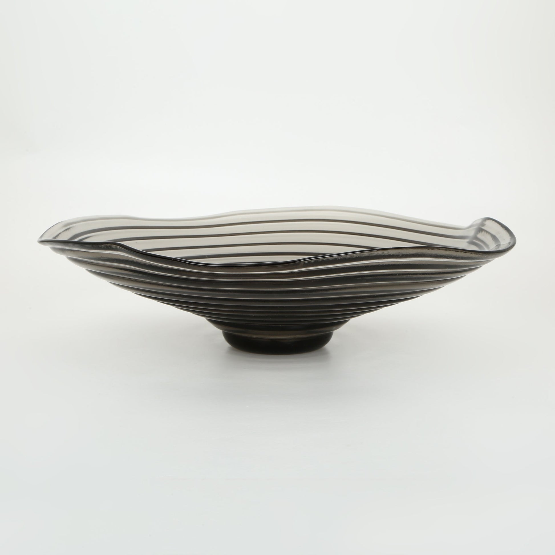 Crafted with precision, the textured glass exudes an air of sophistication and refinement. Each stroke of artistry on the glass reflects light, creating a captivating play of shadows and highlights. This platter serves as a masterpiece that seamlessly blends into any interior, adding a touch of opulence to your living spaces. With its generous size and elegant design, this bowl becomes the centre piece of your dining table, coffee table or even your console table presenting an enticing array of fruits that tantalize the senses.
