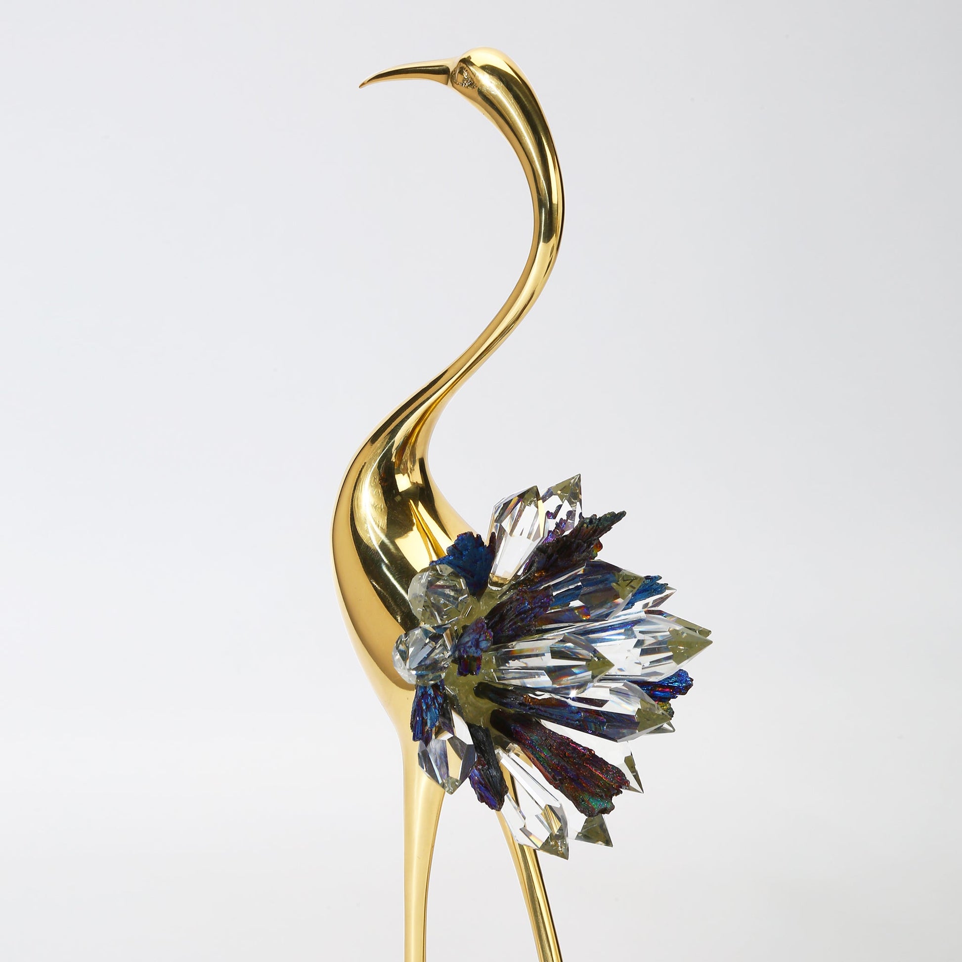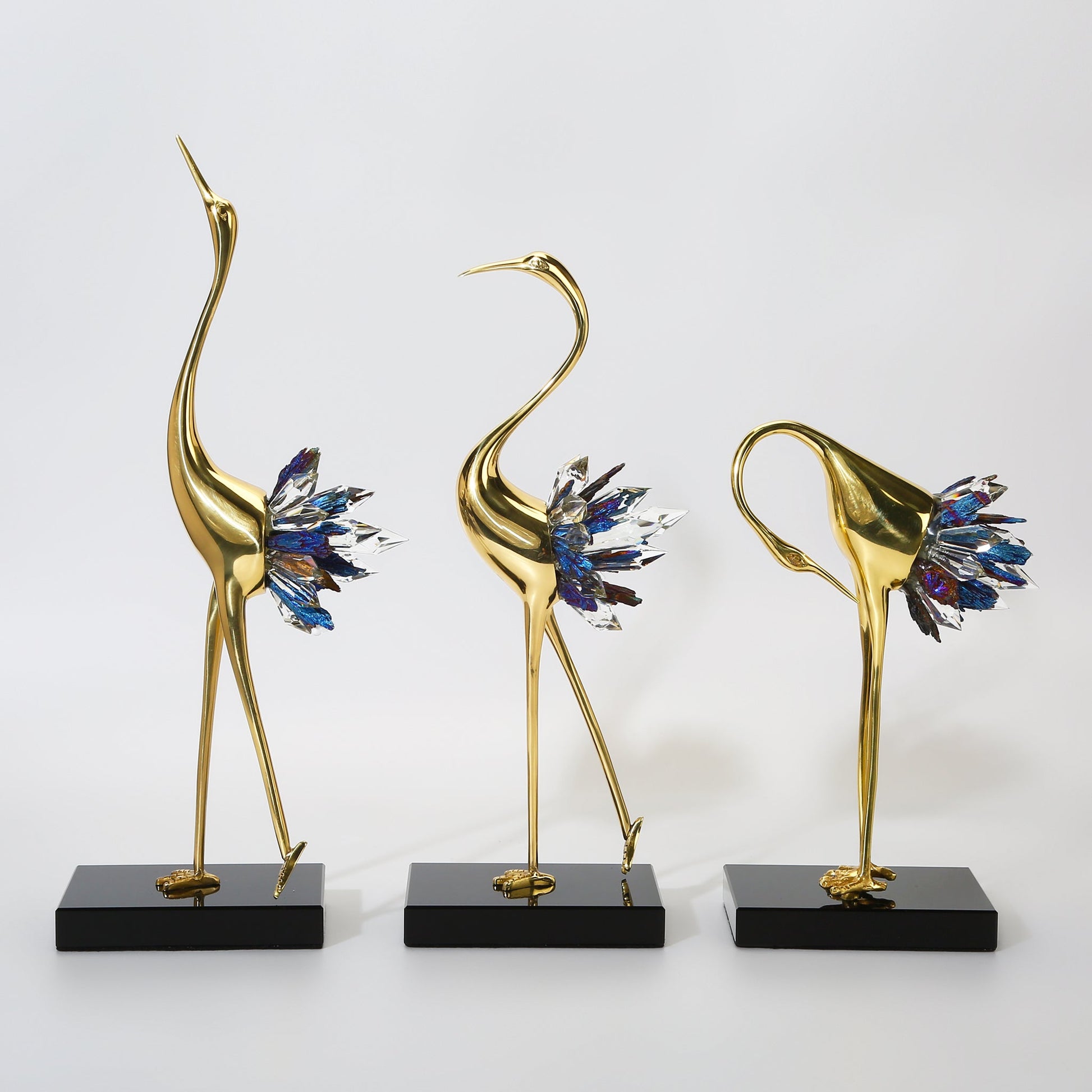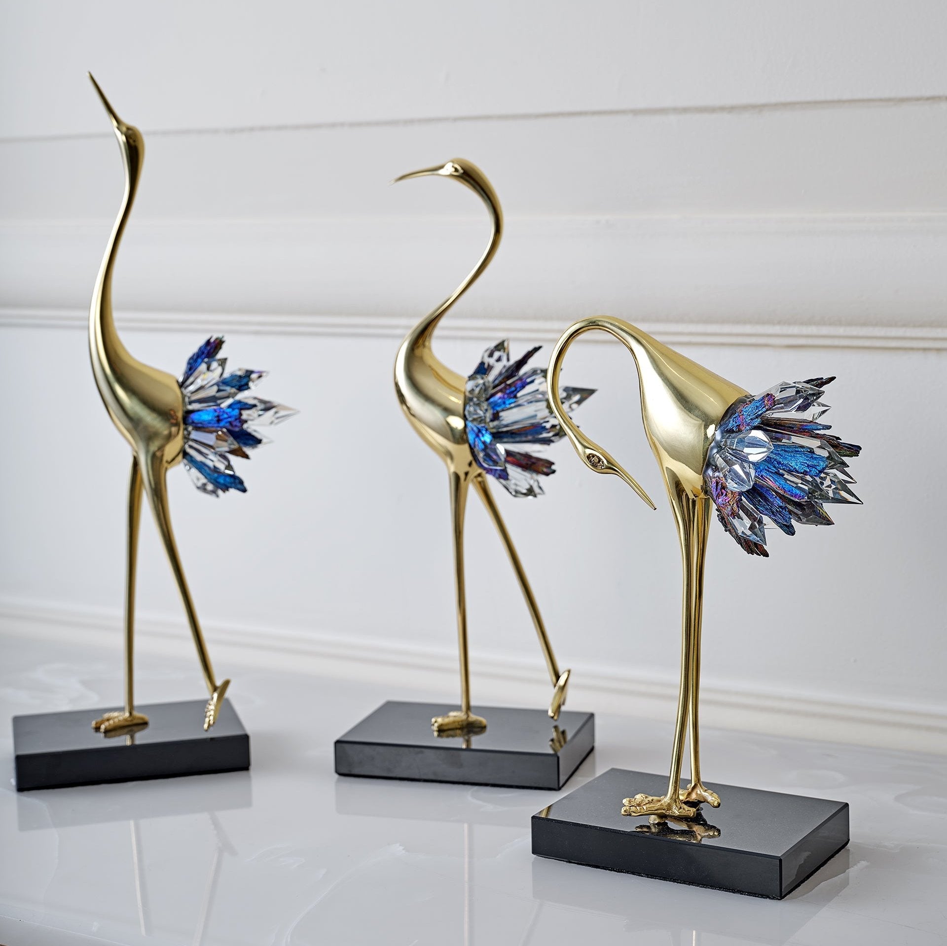 Designed to elevate any space with their impeccable craftsmanship and timeless beauty. Each piece is a true work of art, meticulously cut and polished to perfection. The intricate details and vibrant colors of these flamingos are sure to captivate and add a touch of sophistication and luxury to your home or office.Our delicate crystal flamingo sculpture stand tall on a marble podium with its elegance and charm ready to add ounces of luxury and sophistication to your spaces. Nothing less than a dream, these flamingos signify the beauty of artisanal craftsmanship. The wings are crafted with Finely cut glasses and Natural Blue & Purple Selenite Stone which is a calming stone that instills peace and is excellent for meditation. A statement piece no one can miss, place on your entrance console tables, side tables or desks and enjoy the beauty of this masterpiece!
