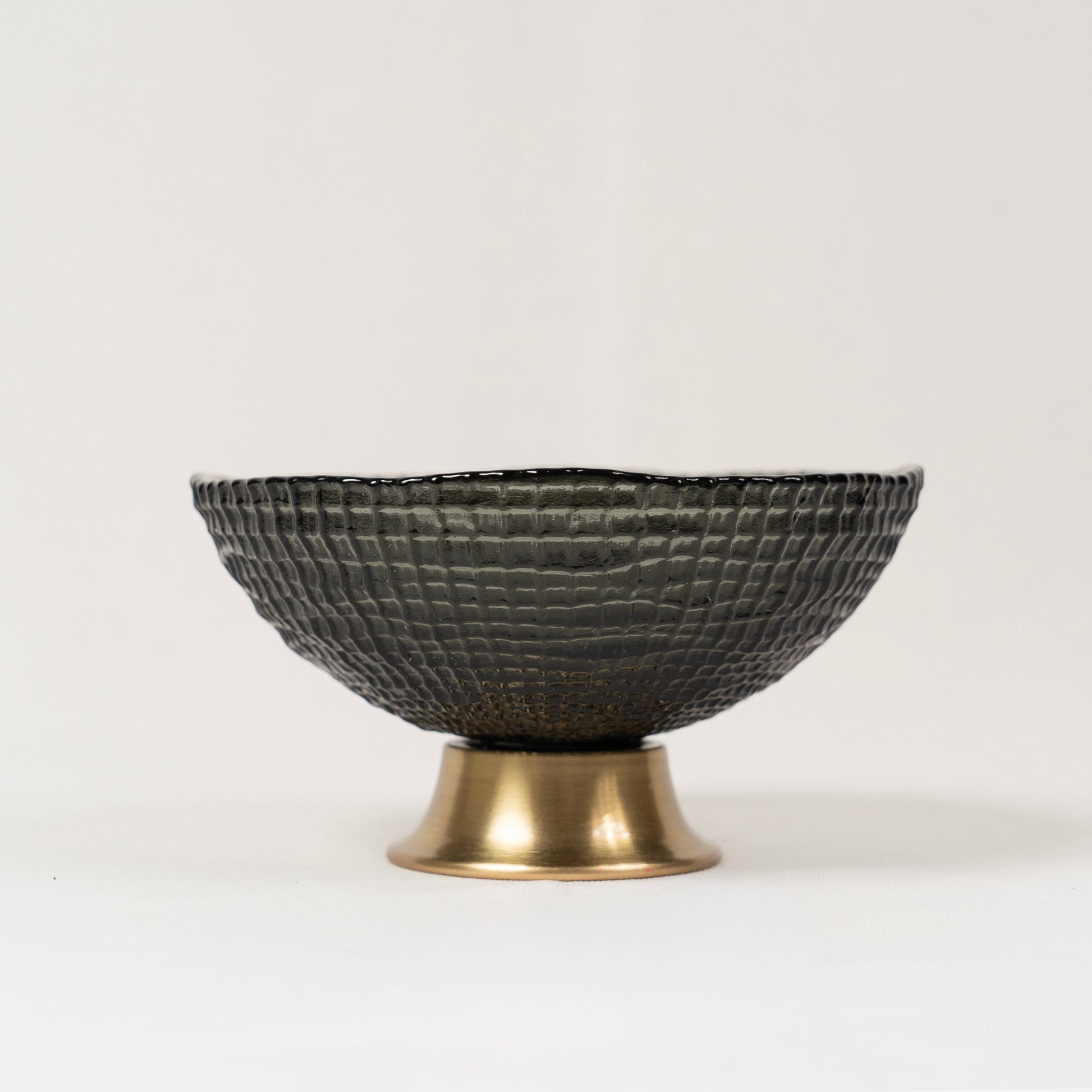 A beautifully crafted nut bowl featuring a tinted crackle glass finish and an elegant golden metal base. This luxurious piece not only enhances the look of your table but also adds a touch of glamour to your space, making it perfect for serving guests while hosting.