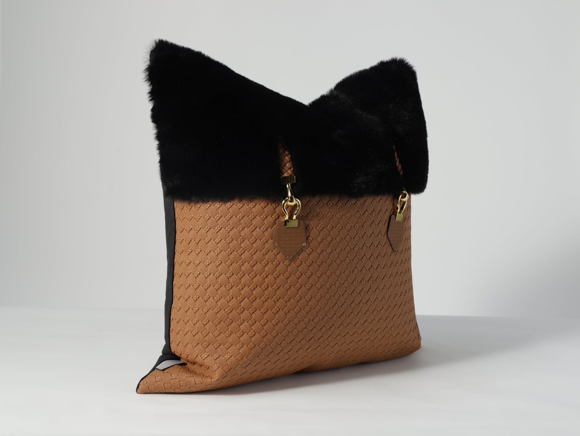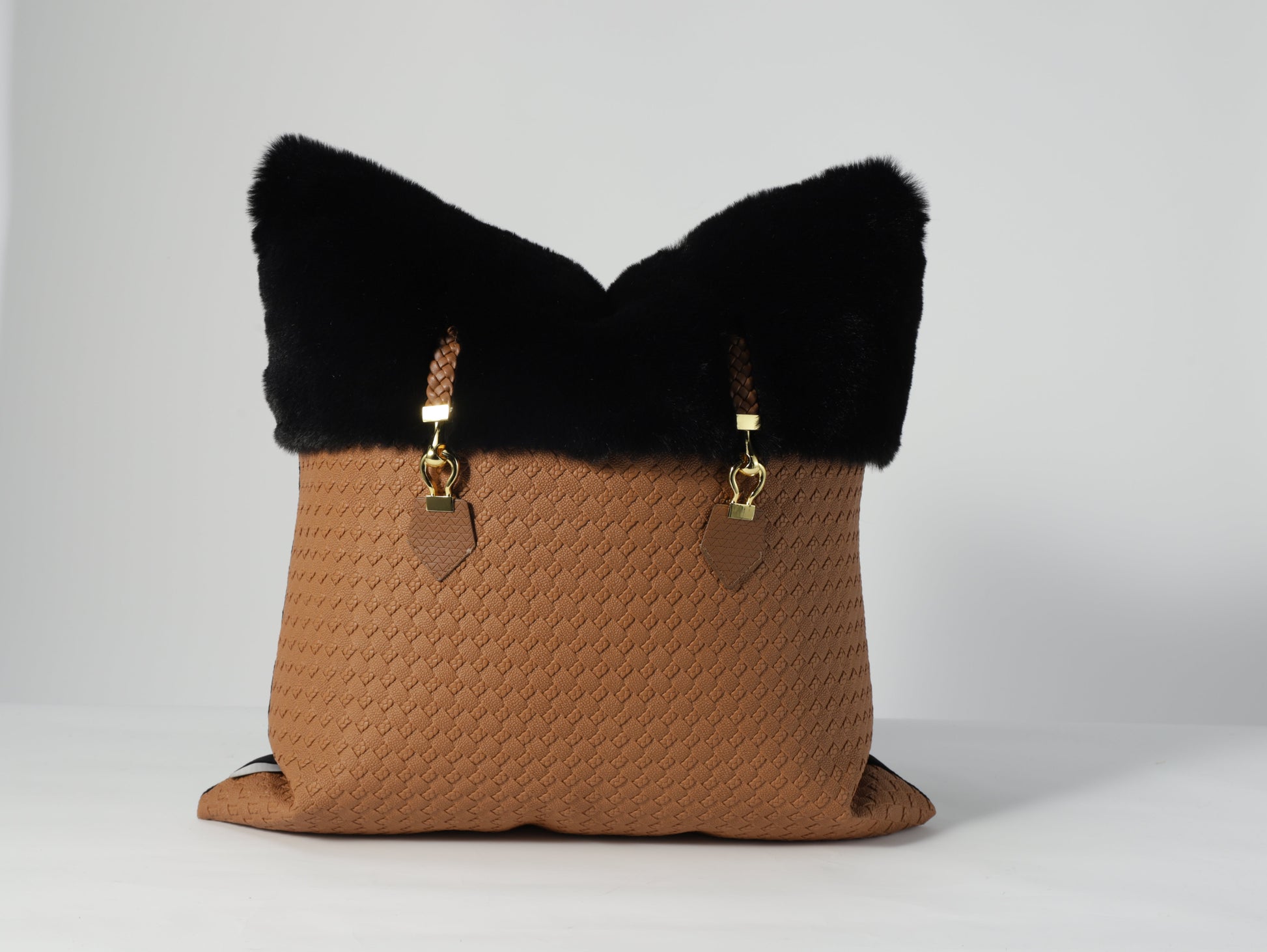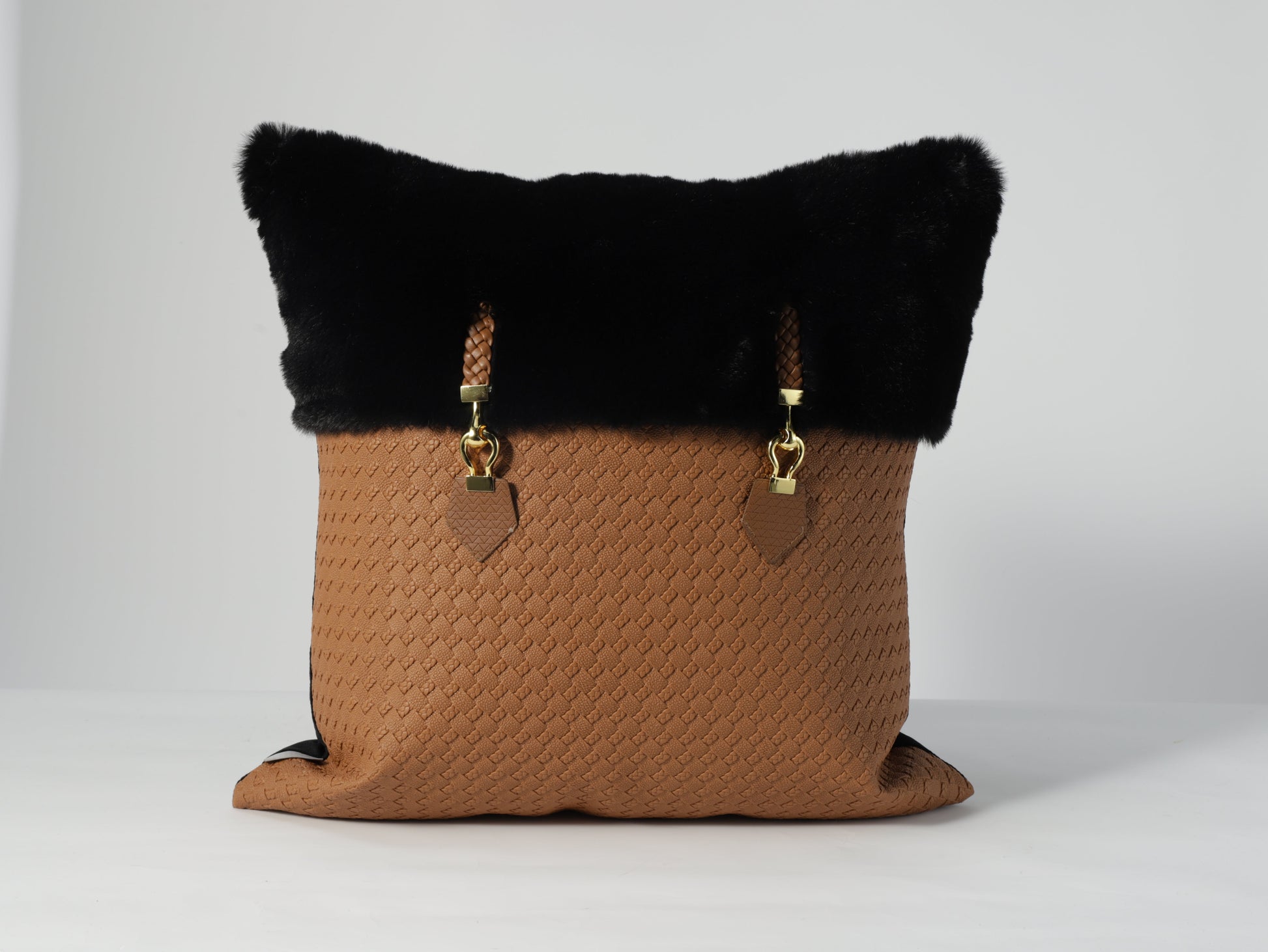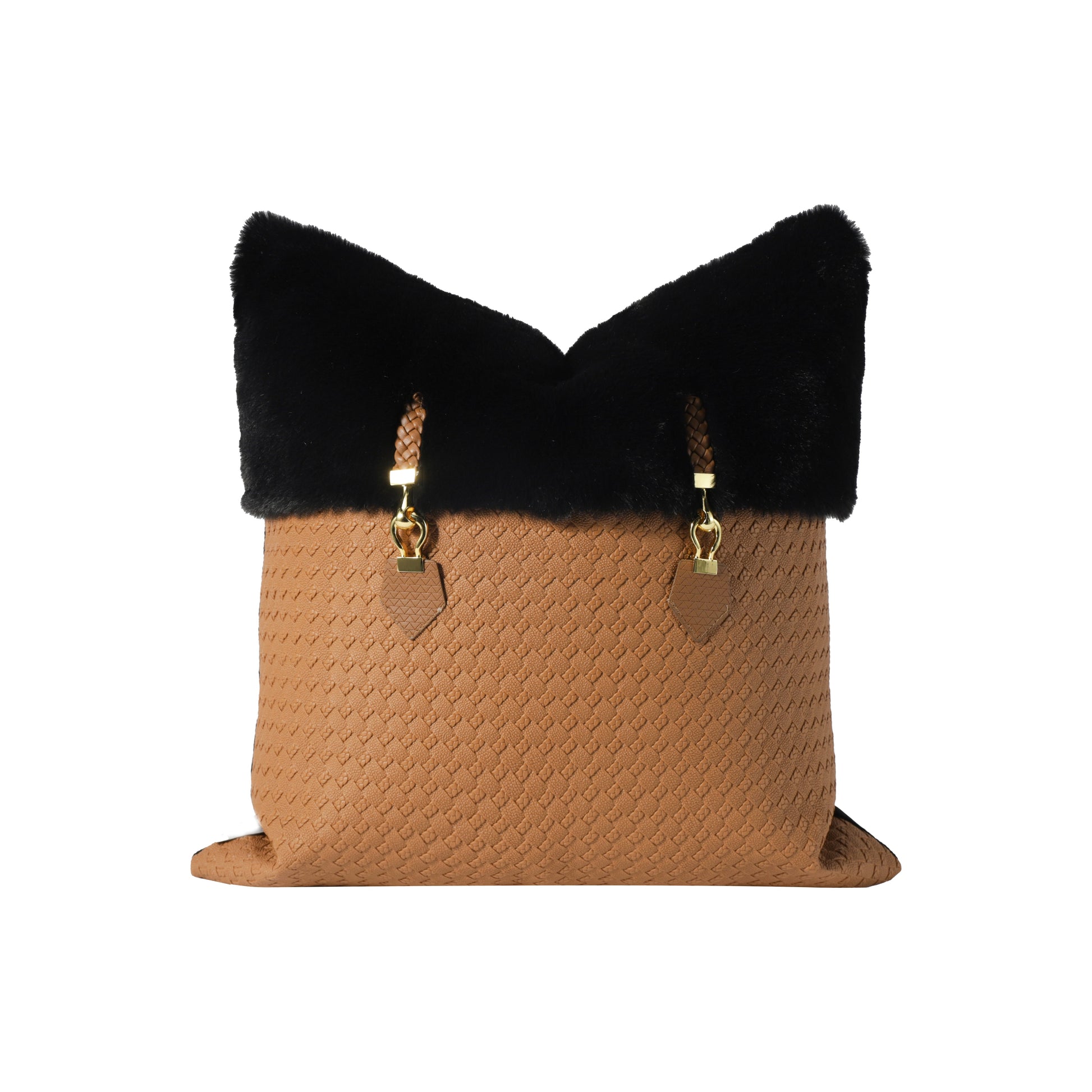 Transform your living space with the understated elegance of our Eclipse Cushion Cover. Crafted from the finest materials, this cushion cover features a tan PU base that exudes luxury and sophistication, perfectly complemented by a striking black fur and buckle details that adds a touch of majesty and richness, making it an ideal accent piece for contemporary interiors.