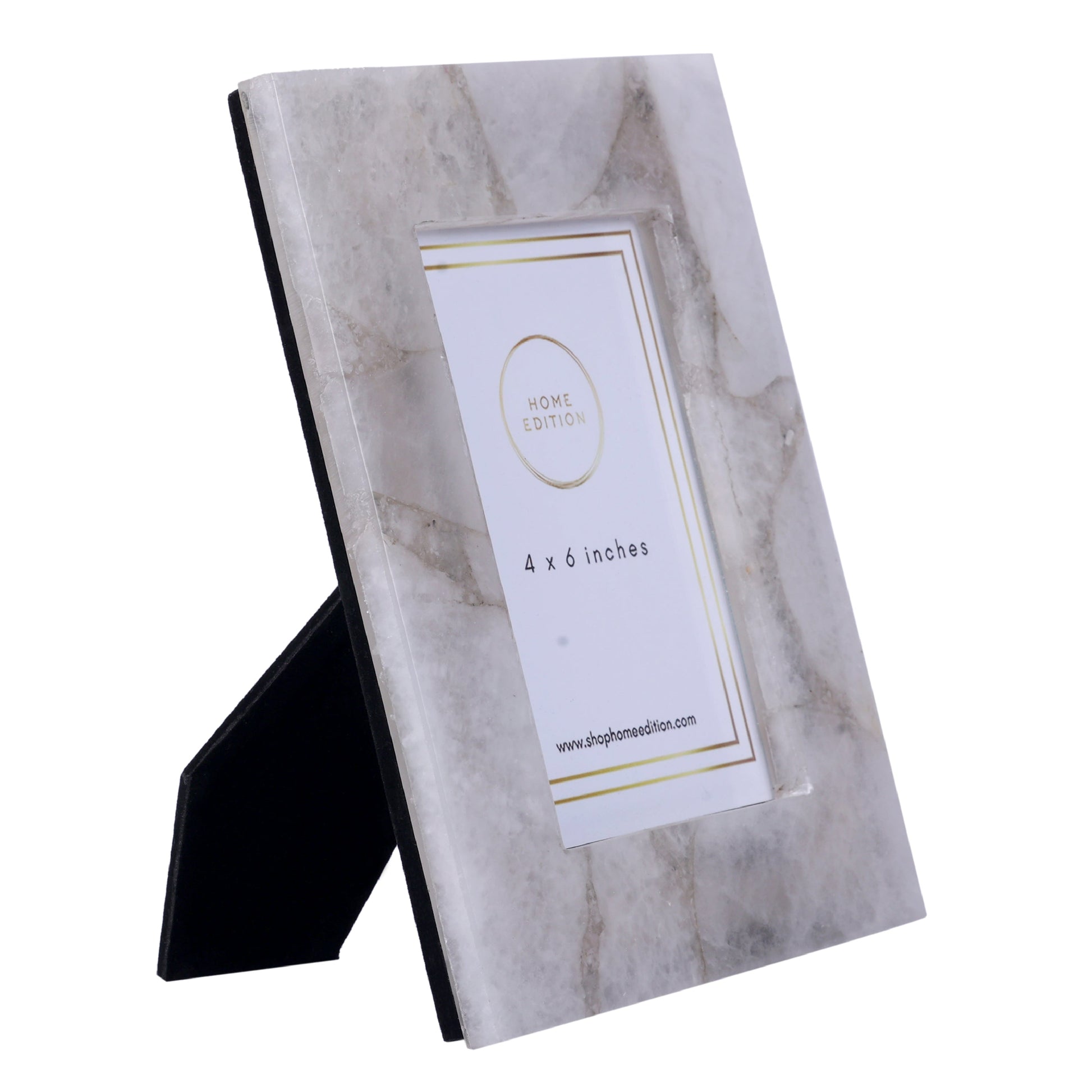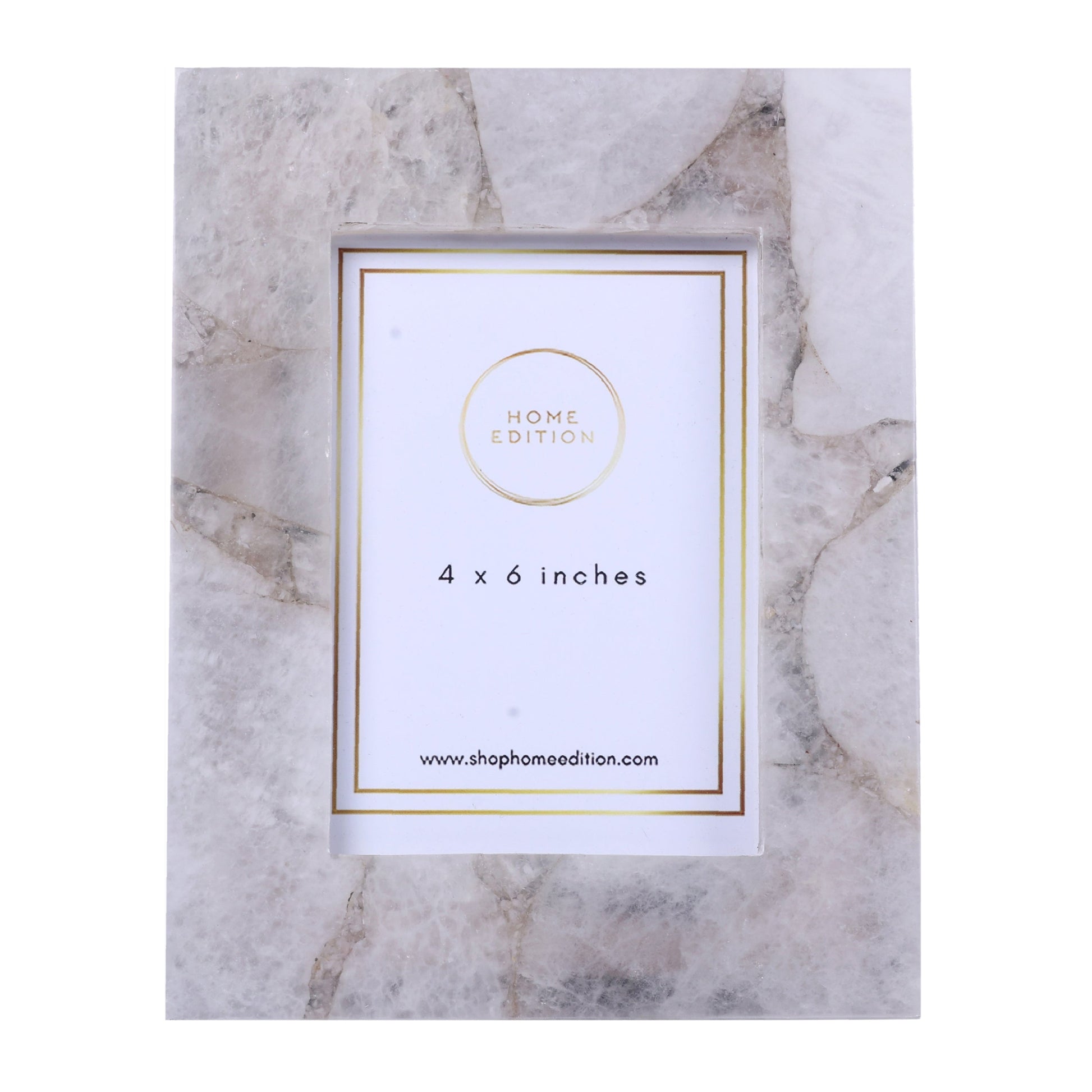 A smokey white agate photo frame, handcrafted with obsessive attention to detail. Highlights the best of your memories in the most sophisticated way.