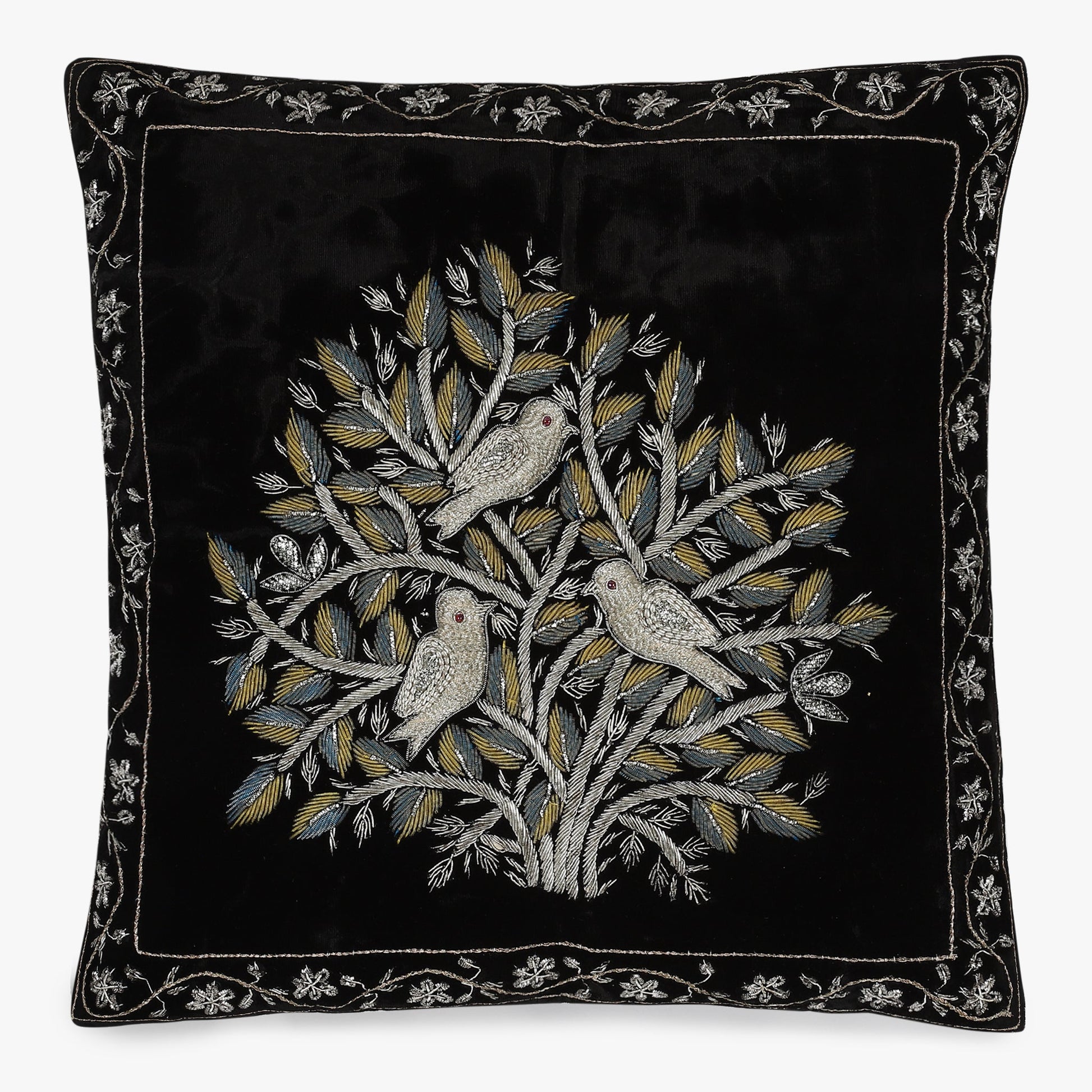 Opulence meets Craftsmanship // the Shaan Velvet Cushion Cover is adorned with exquisite and intricate hand embroidered bird motifs. Each piece is a work of art that will transform your space into a palace of elegance and luxury. These exceptional pieces are one of a kind and crafted keeping in mind discerning Connoisseurs of Art, Where Every Piece Tells a Story of Craftsmanship and Beauty. Elevate Your Living Space with Timeless Elegance.