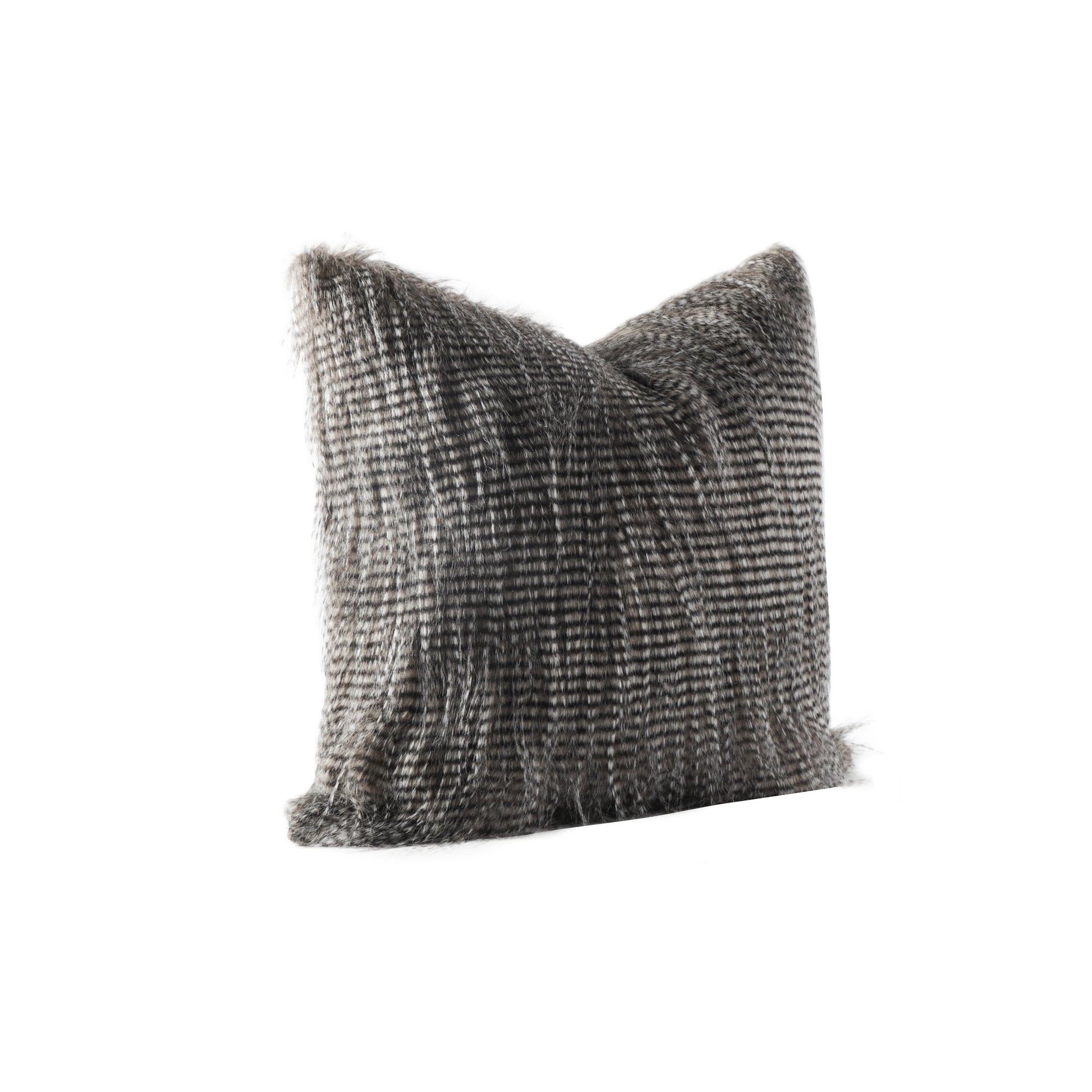 Wrapped in ultra-soft faux fur with a hypnotic blend of earthy greys and silvery sheen, Fog evokes the quiet glamour of alpine retreats and fireside lounges. Its lush texture and natural shimmer catch the light with every shift, adding a layer of depth, warmth, and irresistible indulgence to any space.