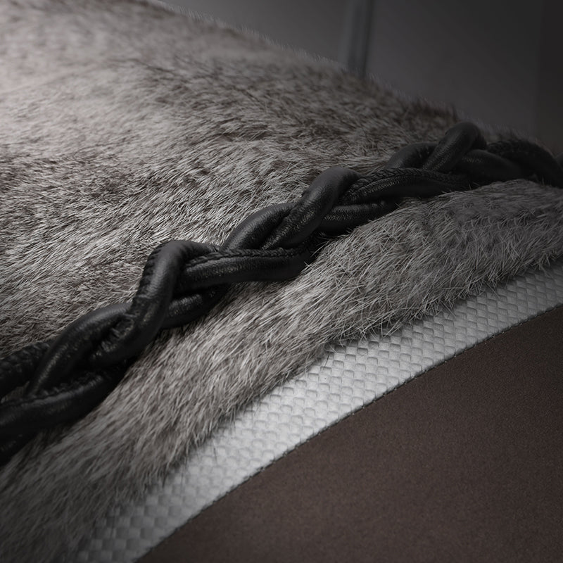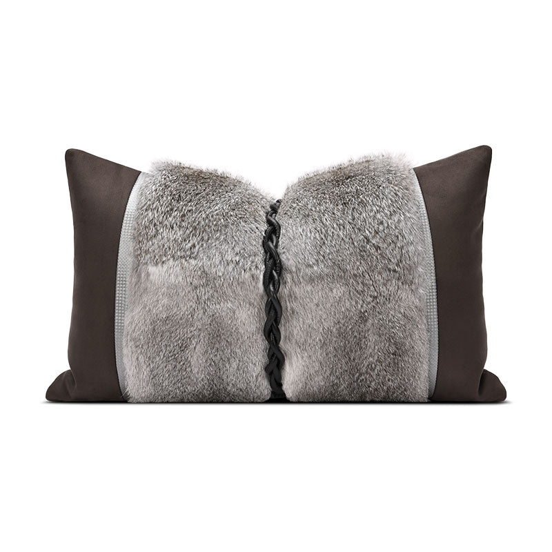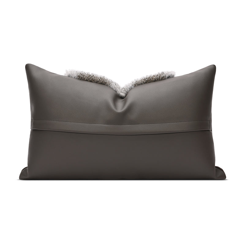 Transform your living space with the understated elegance of our Frost Rectangular Cushion Cover. Crafted from the finest materials, this cushion cover features a rich soft mocha PU base that exudes luxury and sophistication, perfectly complemented by natural fur and black PU trimming. The meticulous black PU chain detailing adds a touch of sophistication and richness, making it an ideal accent piece for contemporary interiors.