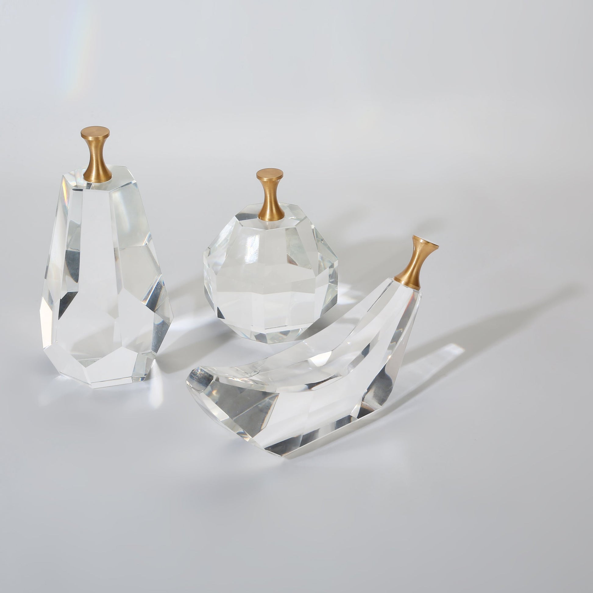 Introducing our delightful "Fruitful Harmony" glass cut sculpture set, an artistic trio that brings the essence of nature to life within your living spaces.