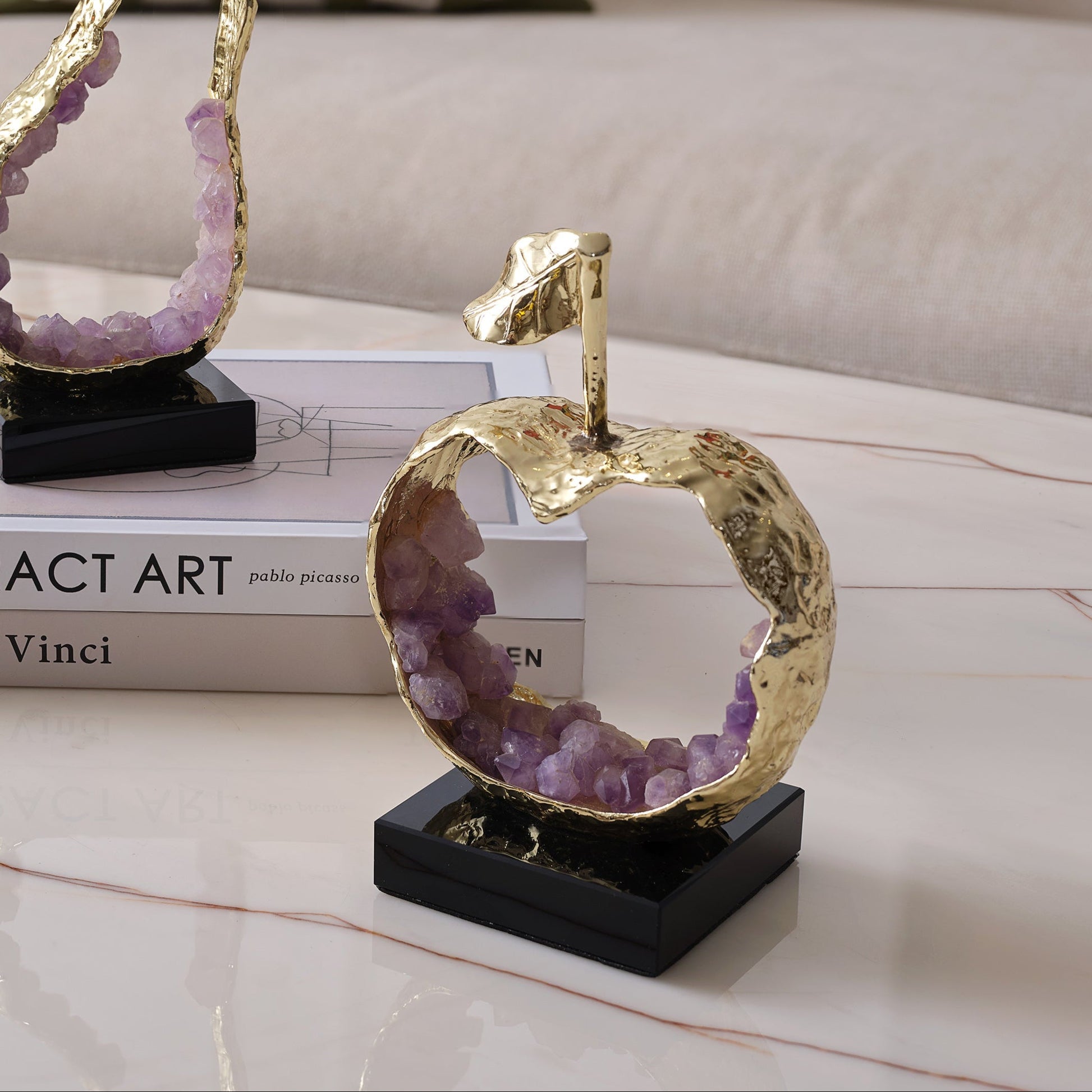 The Ava Sculpture is a compact yet captivating décor piece that redefines elegance with its understated charm. Inspired by the organic beauty of a pear, this exquisite metal sculpture features a hollow form embedded with hand-cut amethyst crystals, creating a mesmerizing interplay of texture and luxury.