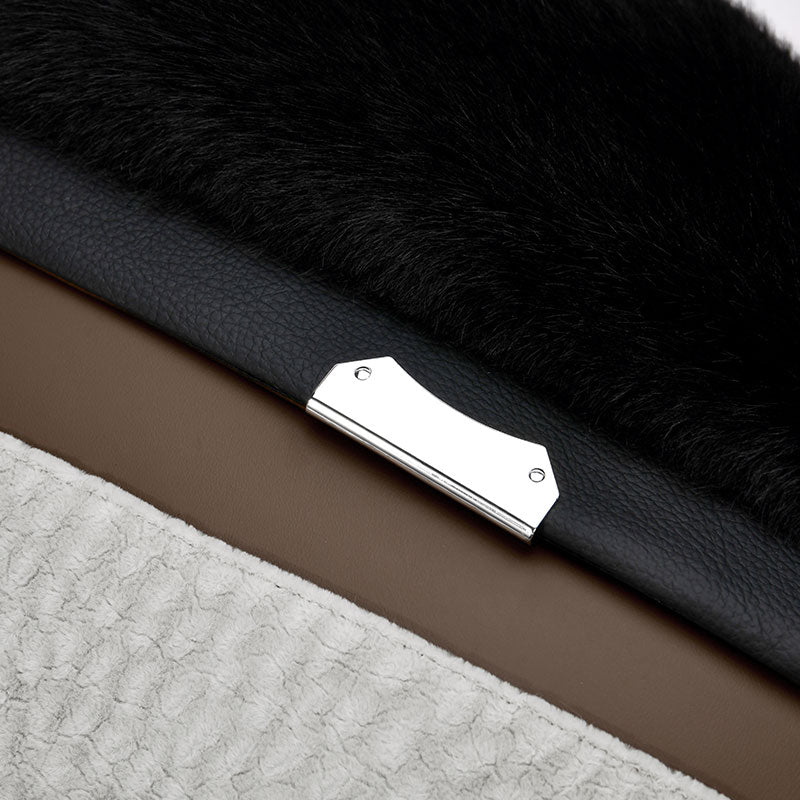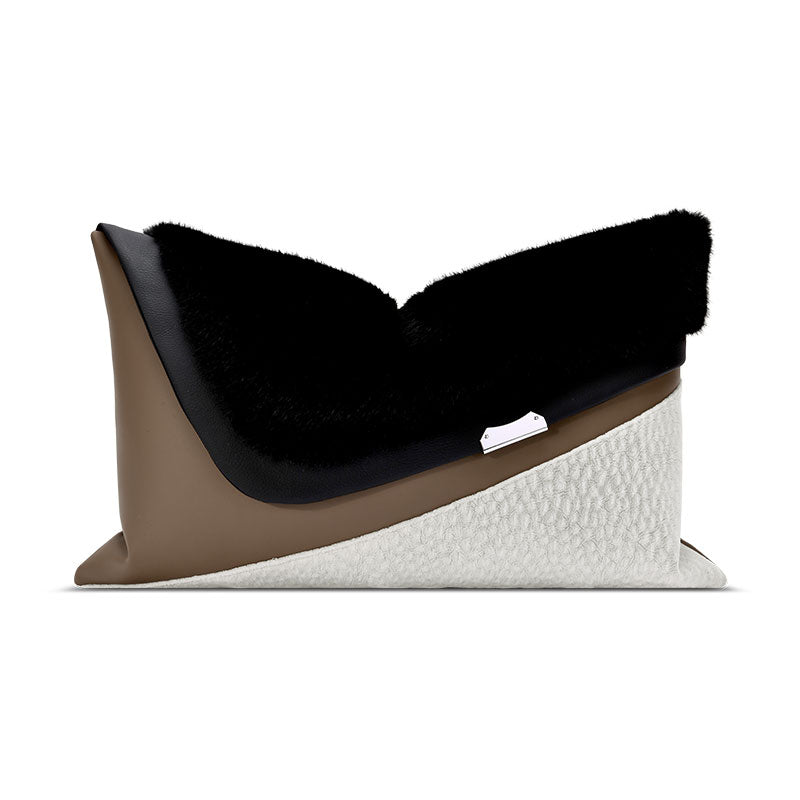 Transform your living space with the understated elegance of our Ember Rectangular Cushion Cover. Crafted from the finest materials, this cushion cover features a rich textured white and soft brown PU base that exudes luxury and sophistication, perfectly complemented by a striking black fur and PU trimming. The meticulously metal ring detailing adds a touch of sophistication and richness, making it an ideal accent piece for contemporary interiors.